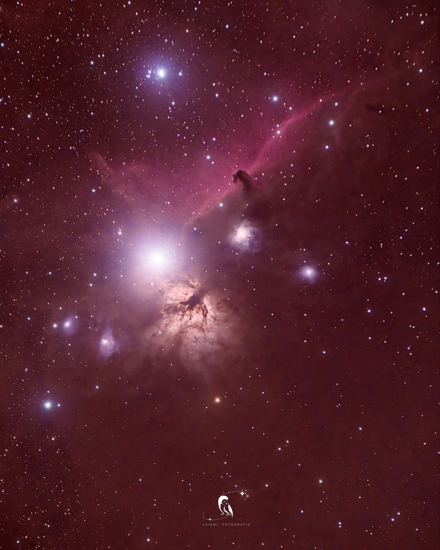 Para el procesado, he seguido un flujo de trabajo exhaustivo: empecé con el apilado en Siril, pasé por el músculo de PixInsight para el estirado y control de estructuras, y terminé el toque artístico y color final en Photoshop. El resultado es este: el brillo intenso de Alnitak iluminando la Nebulosa de la Llama (NGC 2024) y la silueta desafiante de Barnard 33 (Cabeza de Caballo) recortándose contra el resplandor rojizo de IC 434.